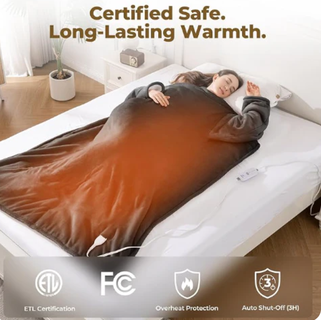 Yes — everywhere. Unlike small blankets that only warm your lap or back, Heatrobe™ wraps your entire body in warmth: shoulders, chest, arms, stomach, legs, and feet.